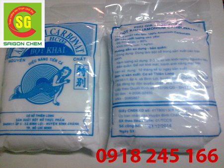Bán bột khai dùng trong bánh bao, dầu cháo quẩy - Ammonium Bicarbonate - Bột khai dạng muối kết tinh bột khô, màu trắng đục, có mùi khai cực kỳ đặc trưng điển hình. Ammonium Bicarbonate (NH4HCO3) còn được biết đến tại Việt Nam với tên bột nở. Bột có mùi khó chịu vì khi chịu tác động của nhiệt hoặc axit nhẹ, cấu trúc phân tử của Ammonium Bicarbonate bị vỡ và sinh ra Amoniac (mùi khai nước tiểu). Ammonium Bicarbonate tan trong nước và không tan trong rượu.