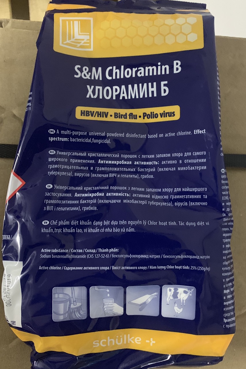 Mua Cloramin B ở đâu TPHCM? - Cloramin B là hóa chất có công thức là C6H5SO2NClNa.3H20, được sử dụng để diệt khuẩn bề mặt, xử lý nước. Trong cloramin B có 25% là clo hoạt tính.