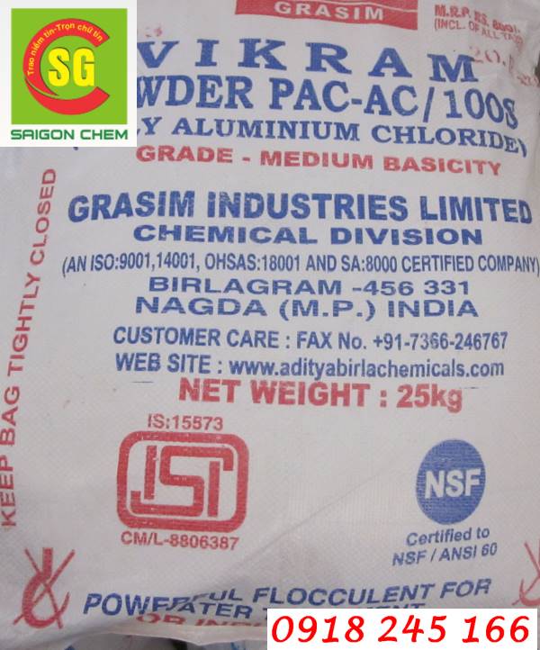 + PAC ấn độ dùng trong ngành xử lý nước (nước hồ bơi, nước thải...) hay trong các bể phản ứng nói riêng.